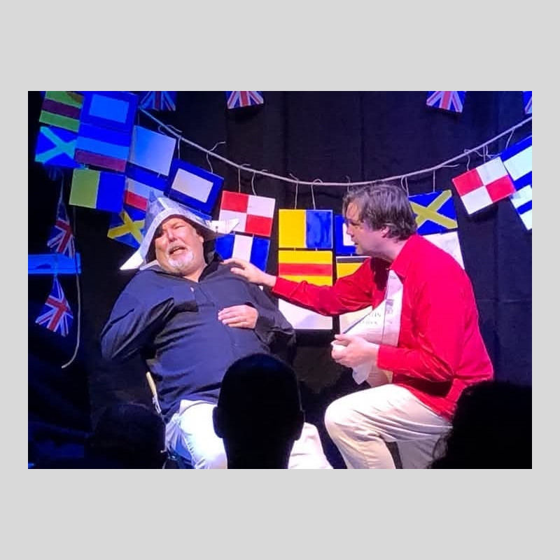 It’s a simple and very portable concept; two chaps with suitcases and interchangeable hats, a few props, a backdrop and a big sound track.
